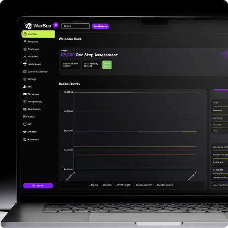 Get funded and trade with WarBux capital. No personal deposits, just pure funded firepower.